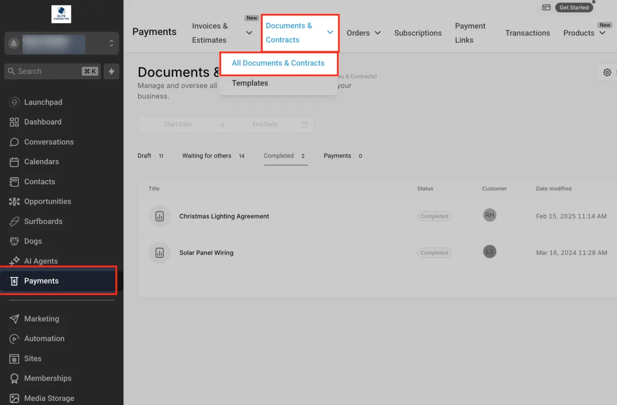 Automatic Invoice Creation ensures that once a lead signs a contract or document containing a product list, HighLevel automatically generates a corresponding invoice. This bridges the gap between client agreement and billing, saving time and reducing manual errors.