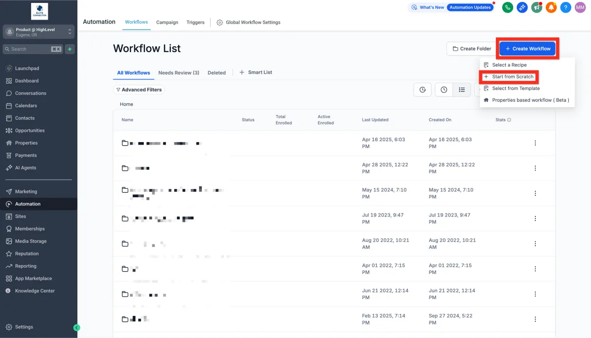 2. Click Create Workflow > Select Start from scratch