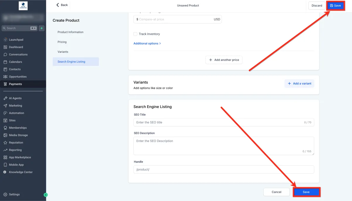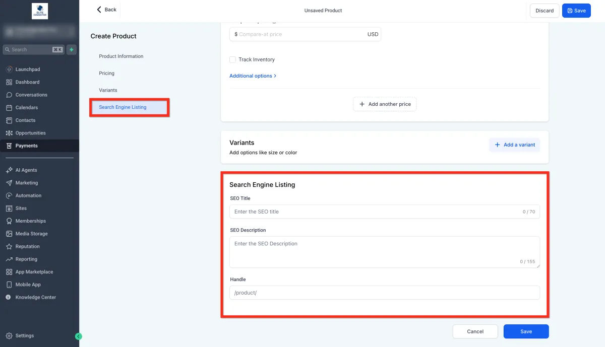 2. Optimize Search Engine Settings: The Search Engine Listing section helps optimize your product for search engines and improves its discoverability online.
