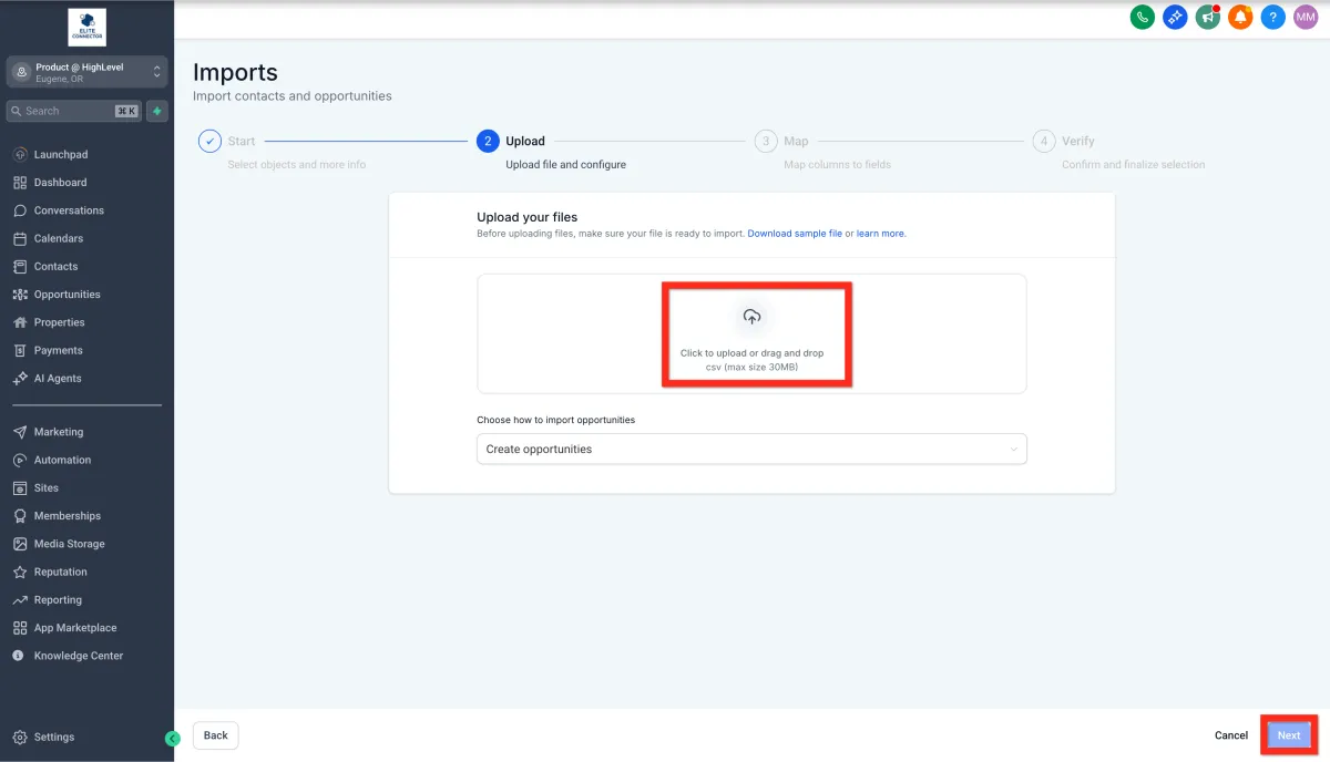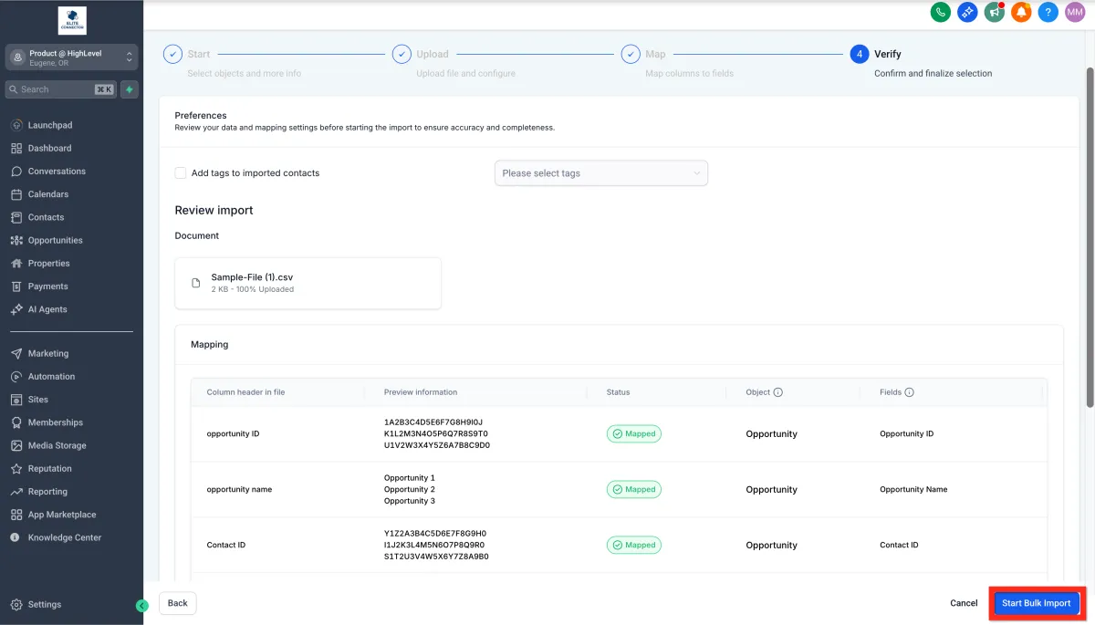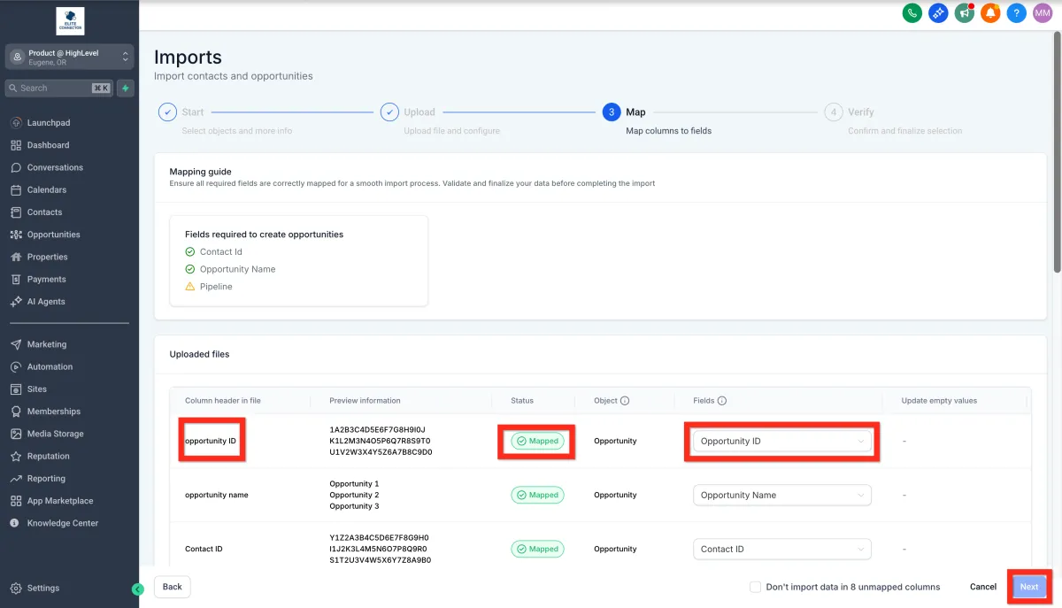 7. Map file columns to Opportunity fields.