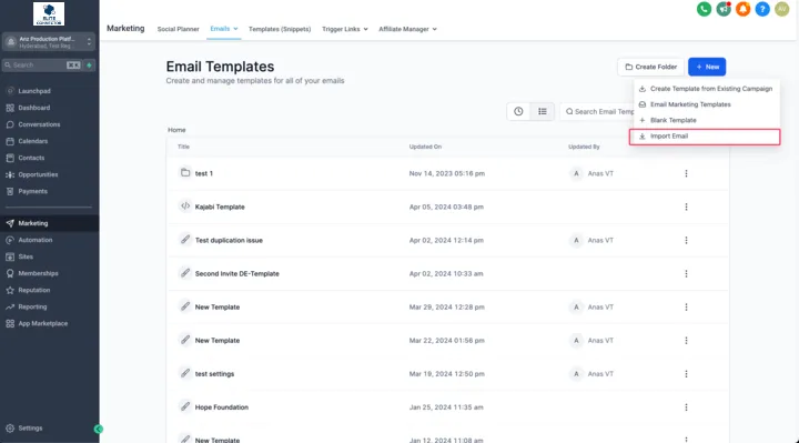 1.Navigate to Email Marketing -> Templates in your account.