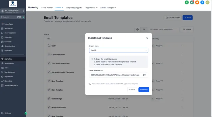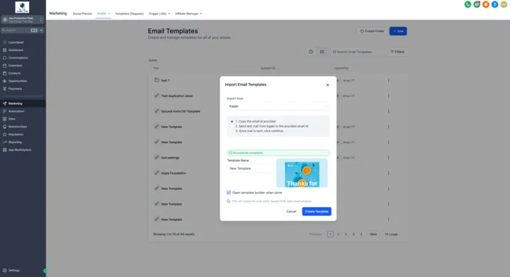 Users can seamlessly import templates from Kajabi by simply sending it in an email from Kajabi to our dynamically generated email ID in just a few steps.