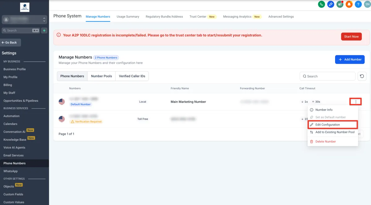 IMPORTANT: If you do NOT use call forwarding, and you are using Voice AI Agents, the Voice AI Agent will ALWAYS pick up the call unless the phone number you use for the AI Agent is your DEFAULT sub-account phone number.