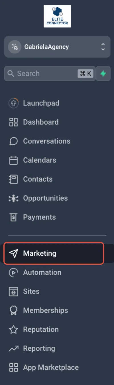 On your subaccount click on marketing