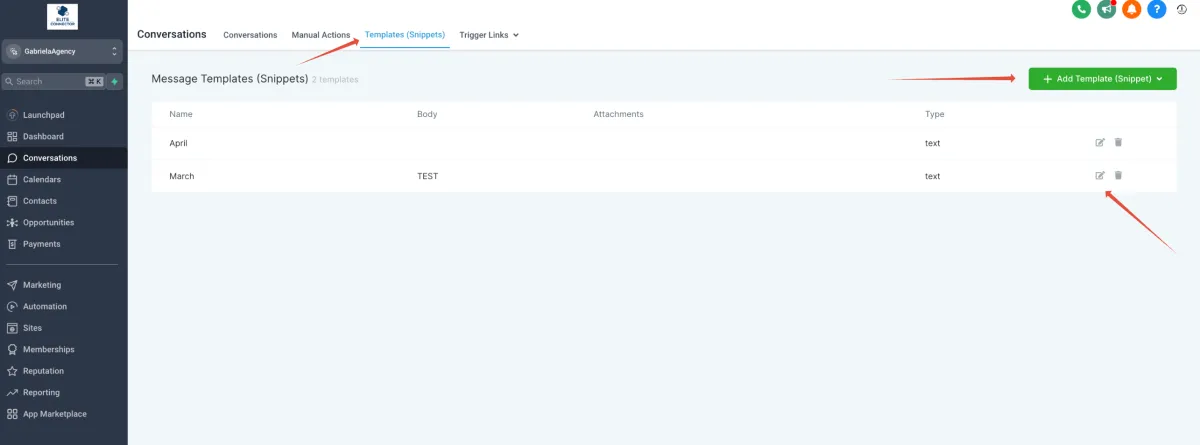 Click on 'Templates , Here, you can create, edit, or delete your templates.