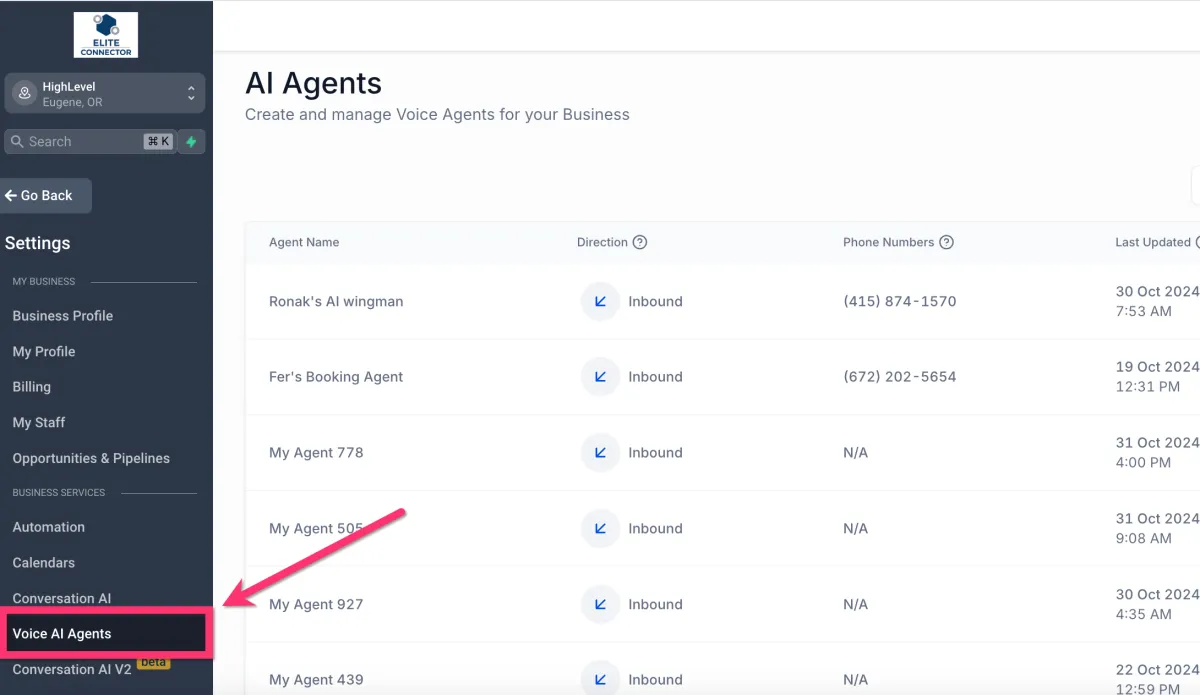 You can locate your AI Agents in Settings > Voice AI Agents